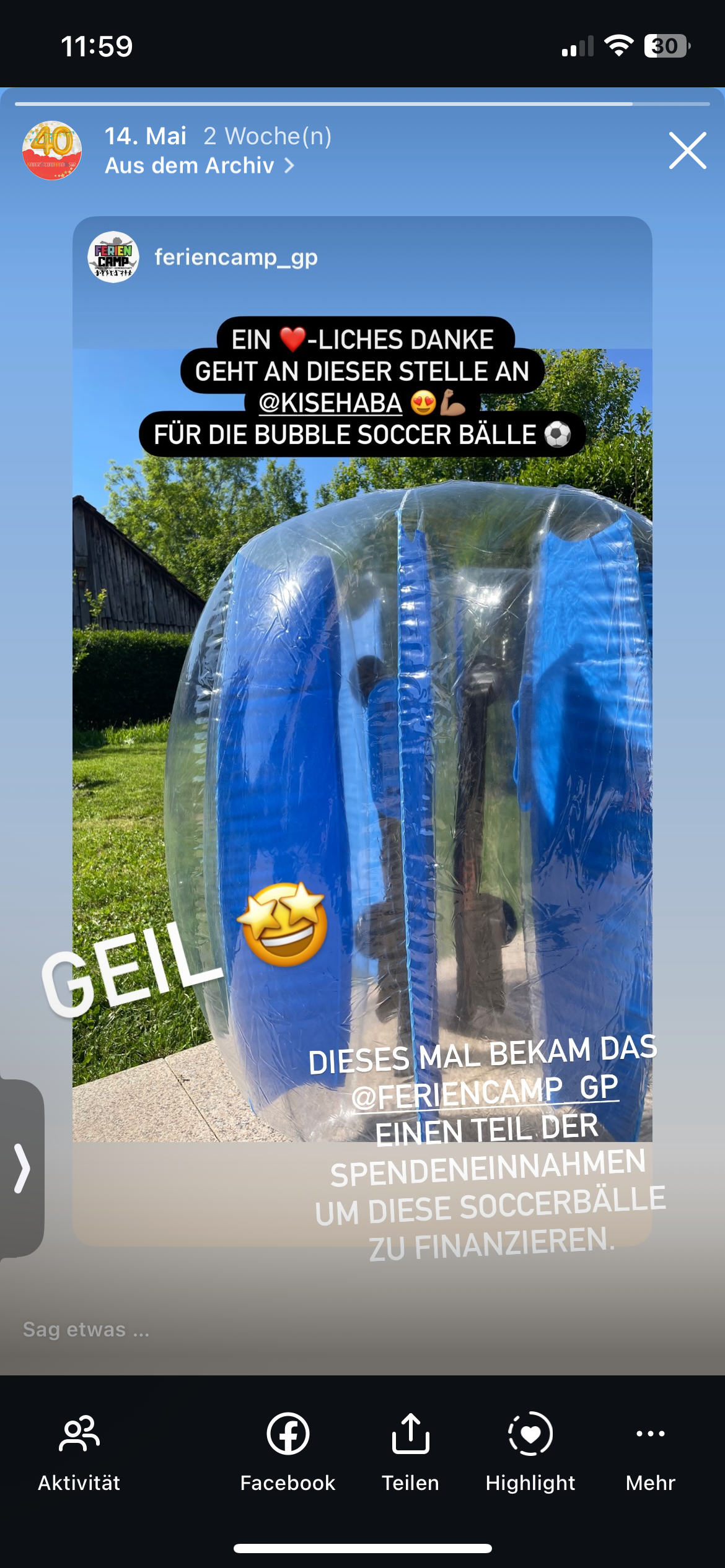 Das Feriencamp GP konnte mit Eurer Unterstützung Soccer Bubble Bälle anschaffen. Steffi und ihr Team haben sich mit einem Posting bei Instagram bedankt.