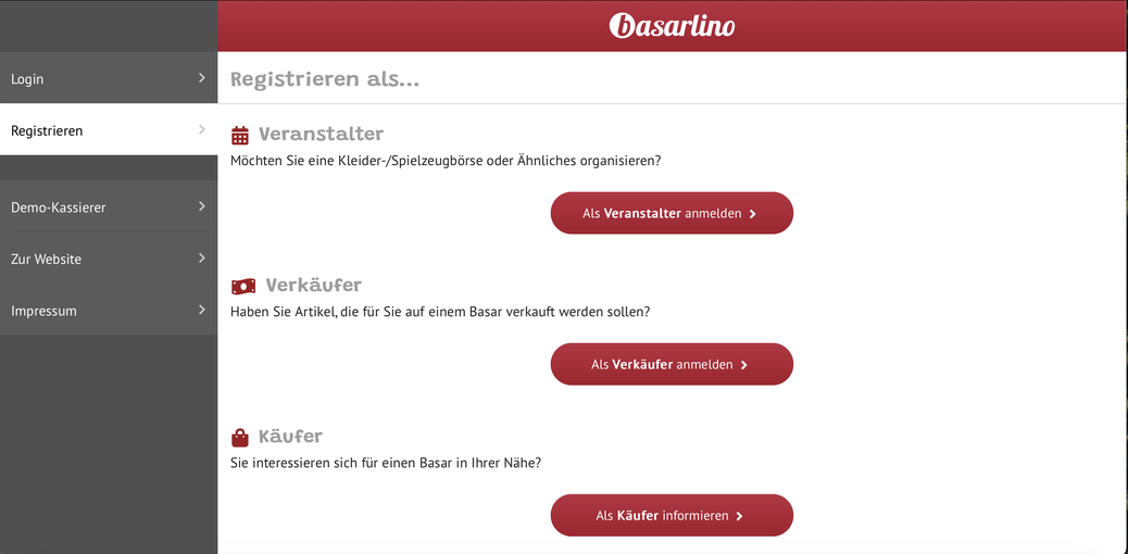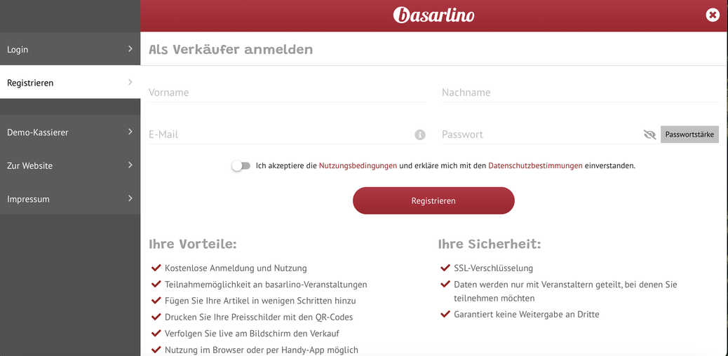 Auf diesen Seiten gehen wir auf die Registrierung bei Basarlino ein.